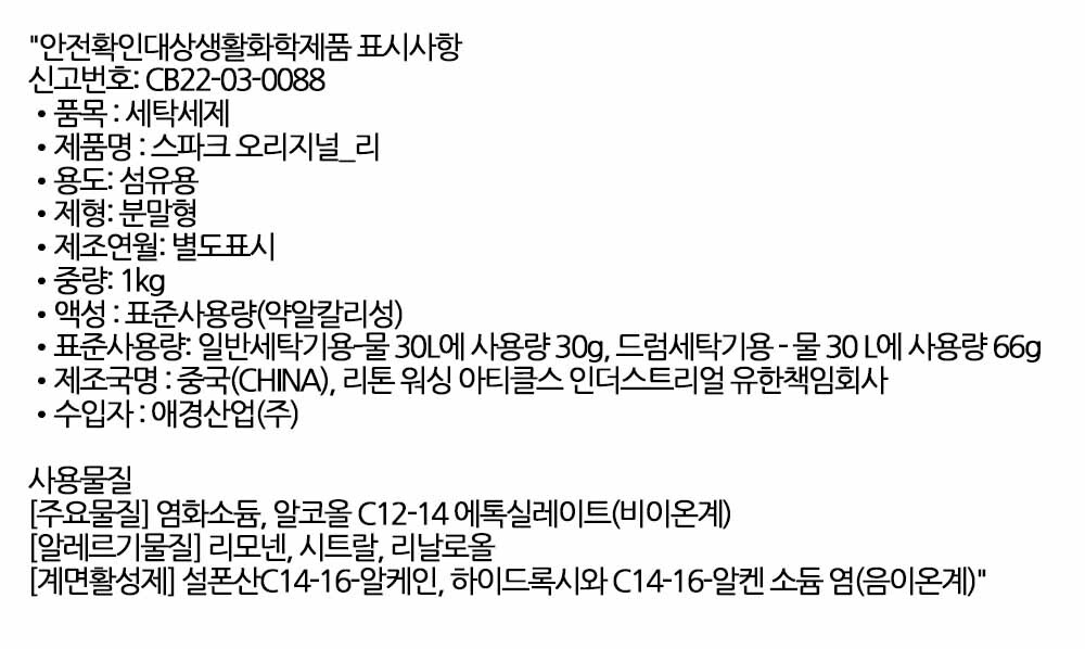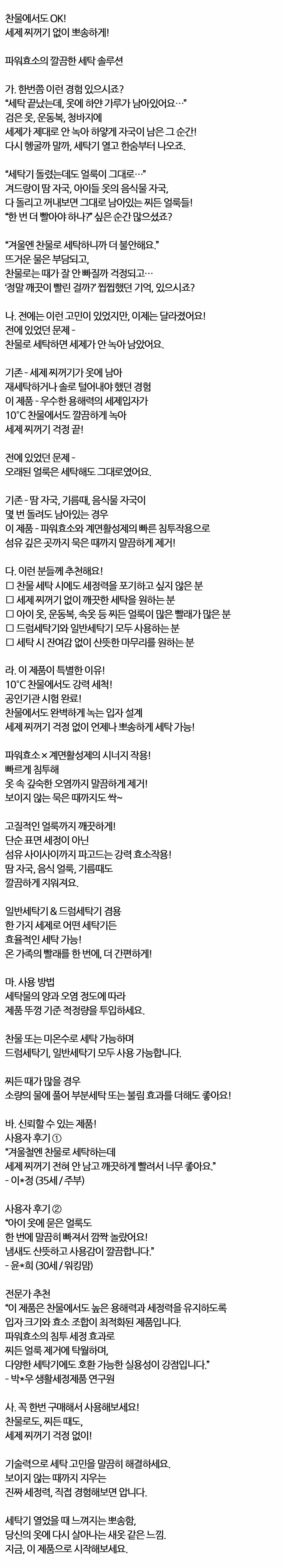 찬물에서도 세제 찌꺼기 없이 뽀송하게 세탁세제 1kg