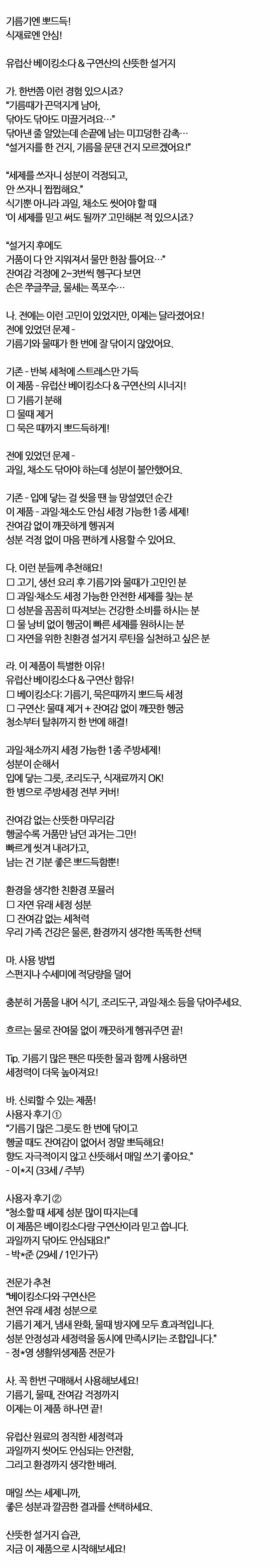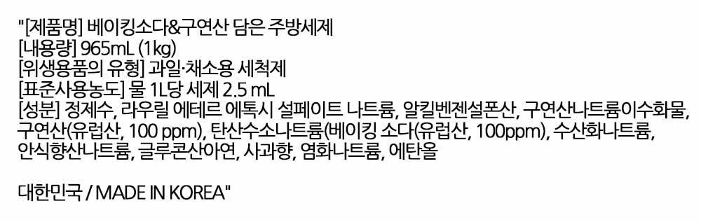 기름기 묵은때 뽀드득세정 베이킹소다 주방세제 965ml