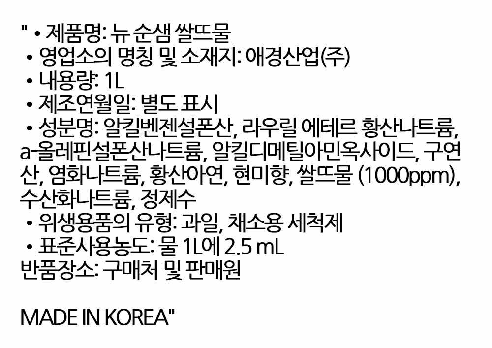 경기도 이천 쌀로 만든 쌀뜨물 성분 함유 주방세제 1L