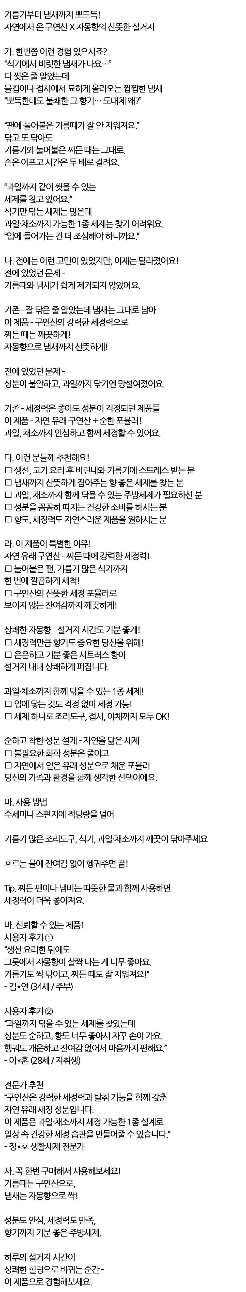 눌어붙은 팬 기름기 많은 식기 자몽향 주방세제 1.2L