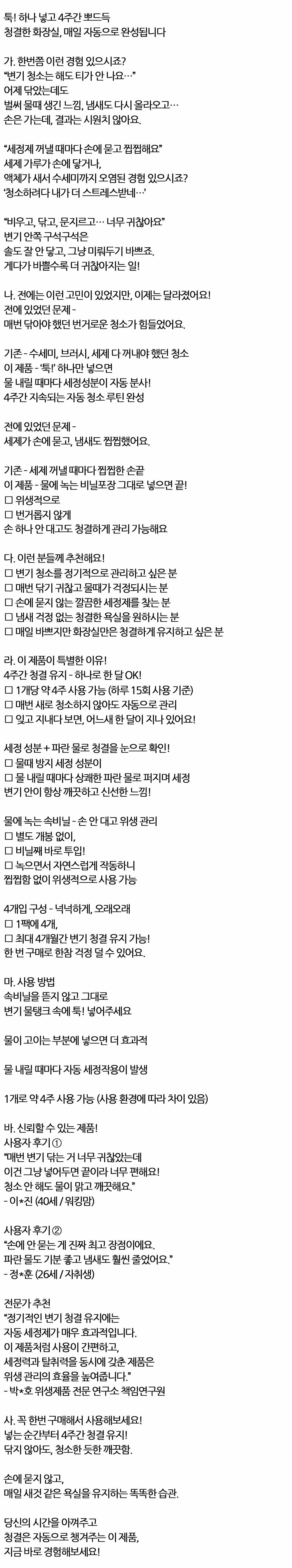 하나 넣고 4주간 뽀드득 청결한 변기세정제 40g 4개