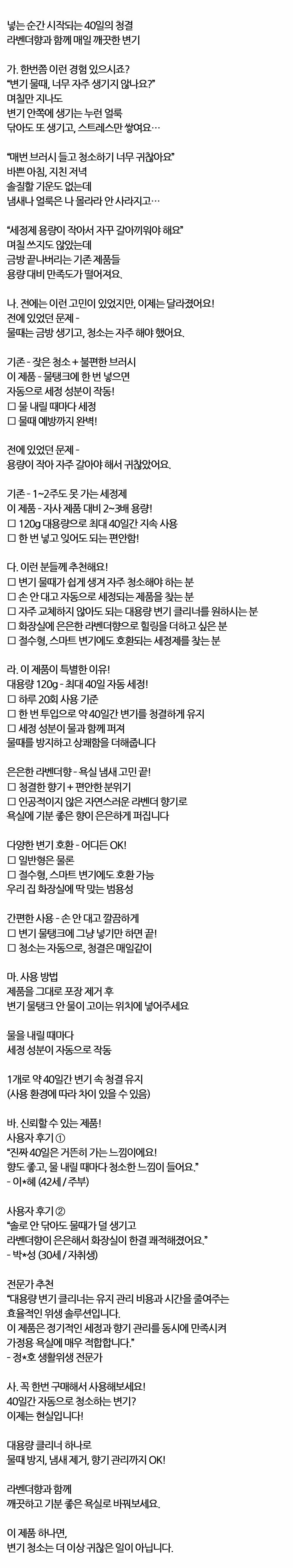넣는 순간 시작 40일 청결 라벤더향 변기세정제 120g