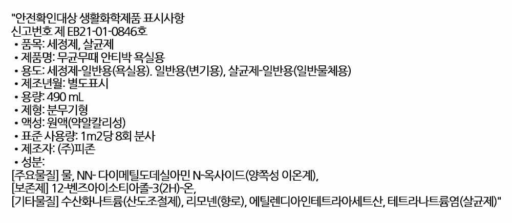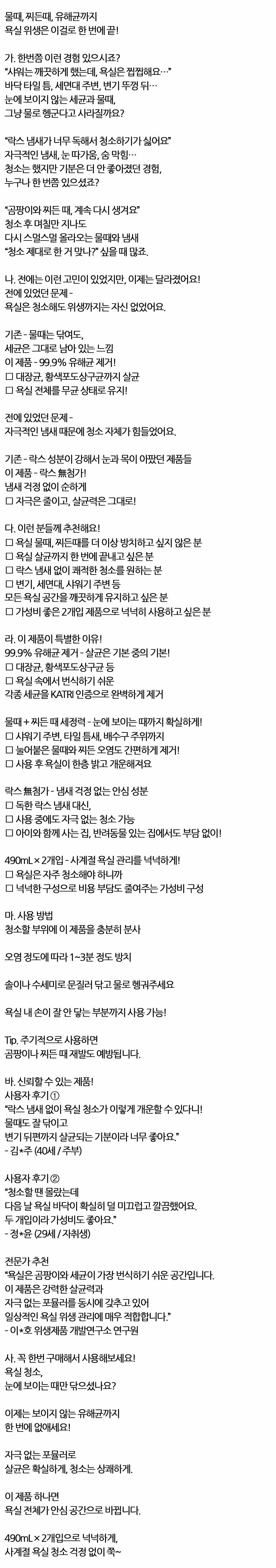 바닥타일 세면대 변기뚜껑 뒤 욕실용세정제 490ml 2입