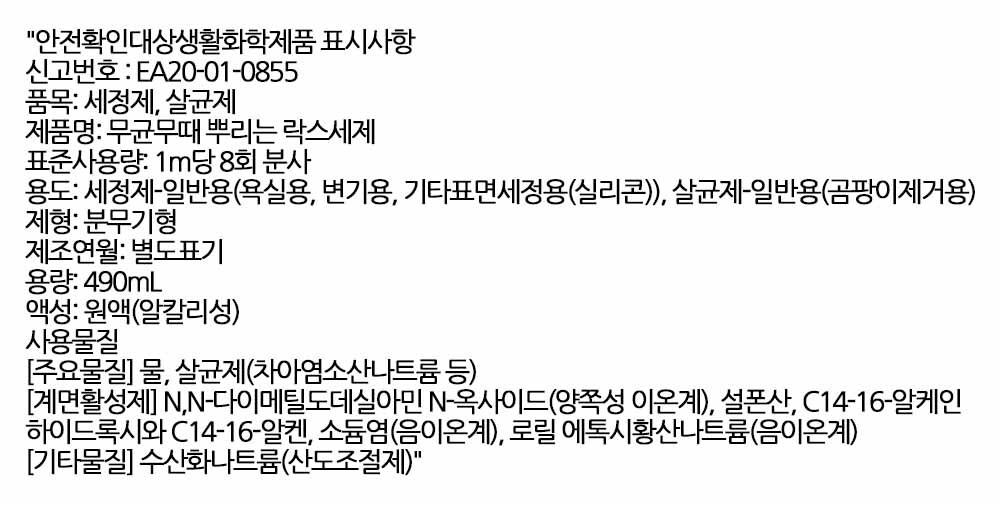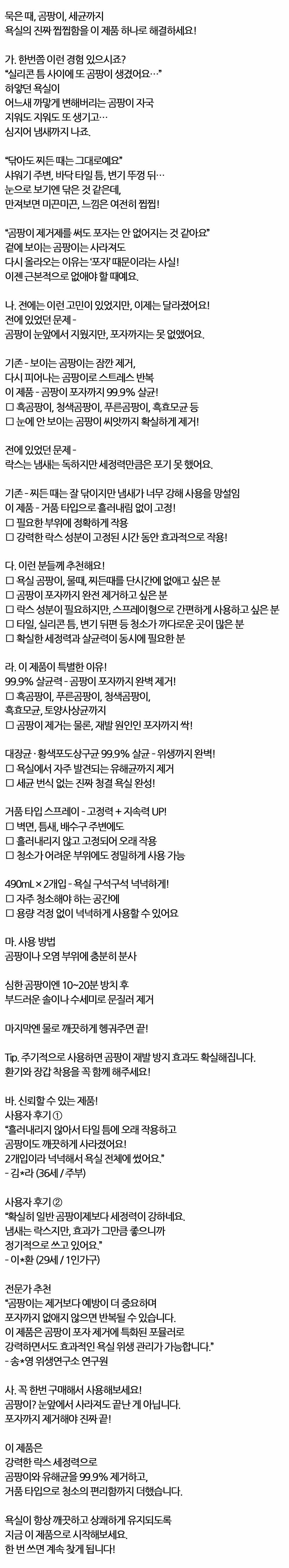 욕실곰팡이 물때 찌든때 욕실청소용 세정제 490ml 2입