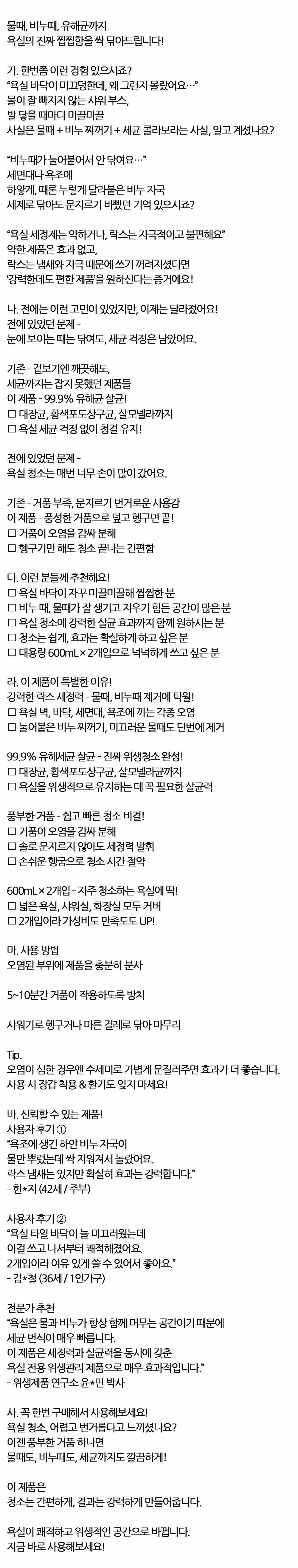 비누때가 눌어붙어서 안 닦여요 욕실세정제 600ml 2입