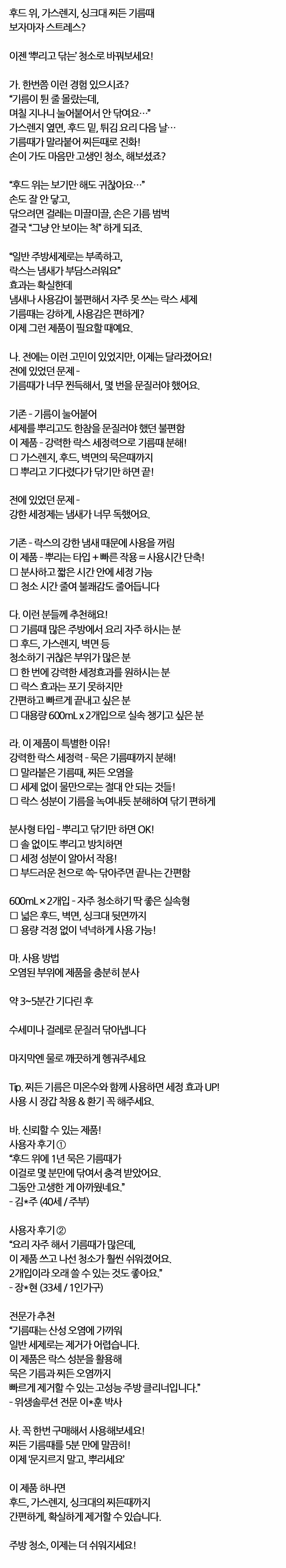 기름때 말라붙어 찌든때로 진화 주방세정제 600ml 2입