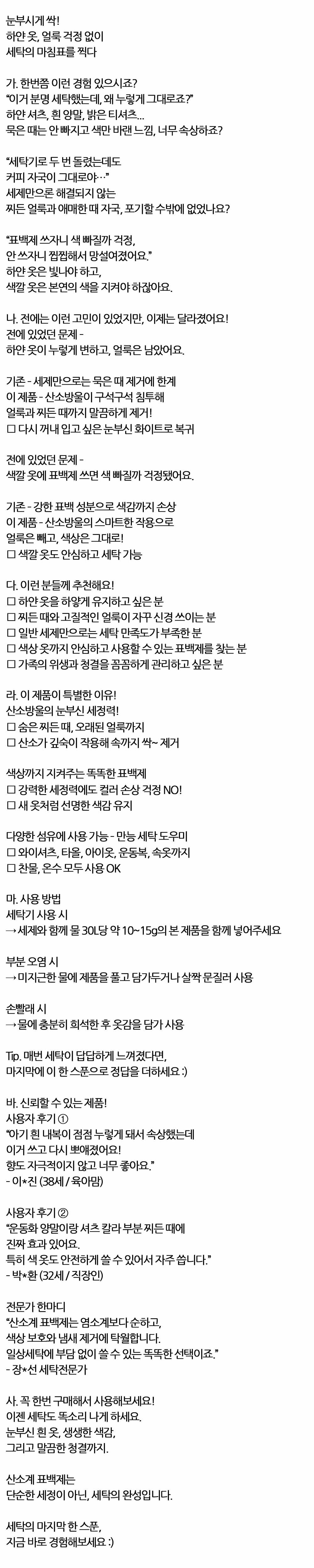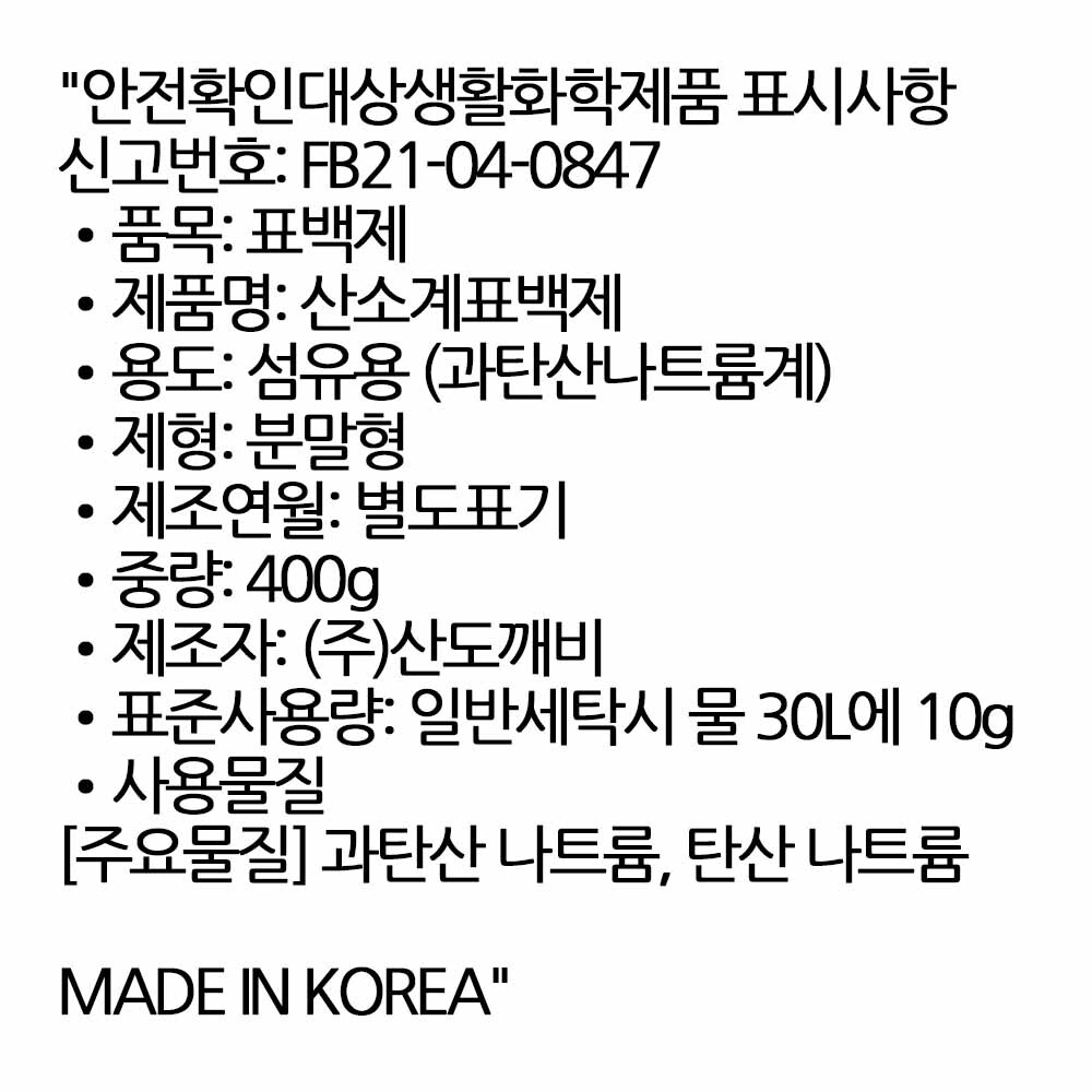 찌든때와 얼룩을 산소방울로 말끔히 제거 표백제 400g