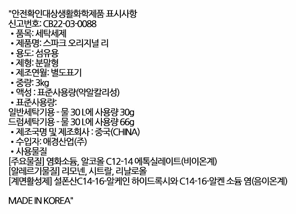 파워효소로 숨은 때까지 깨끗하게 제거 세탁세제 3kg