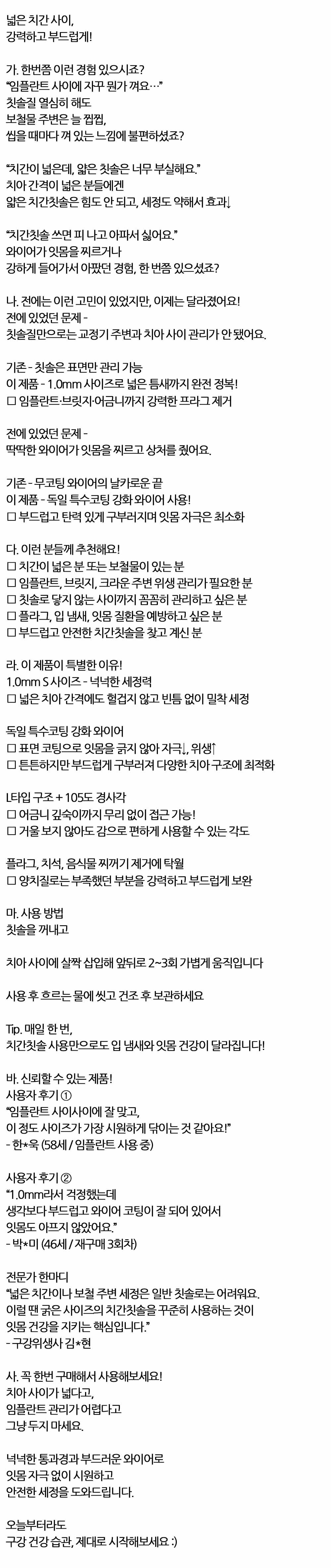양치만으로는 부족한 관리 치간칫솔 L타입 S 1.0mm 4P
