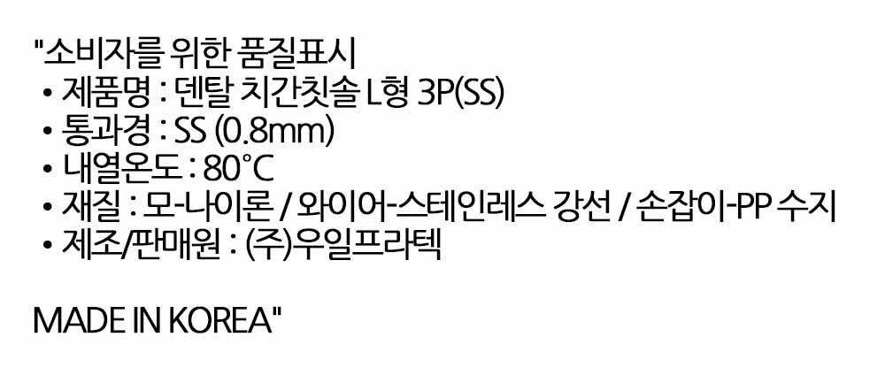 교정기틈새 임플란트주변 치간칫솔 L타임 SS 0.8mm 3P