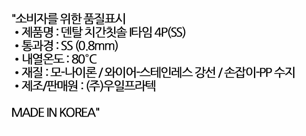 칫솔 닿지않는 깊숙한 틈 치간칫솔 I타임 SS 0.8mm 4P