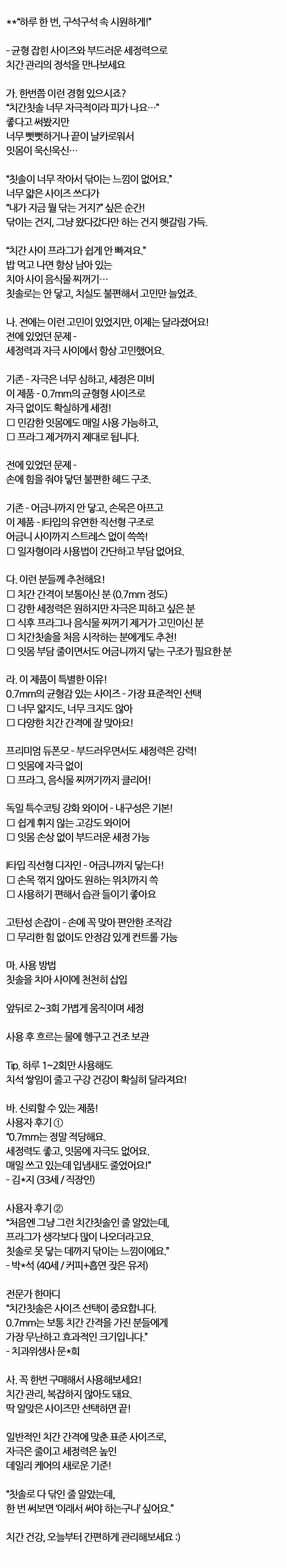 치아 구석 속 시원하게 치간칫솔 I타입 3S 0.7mm 5P