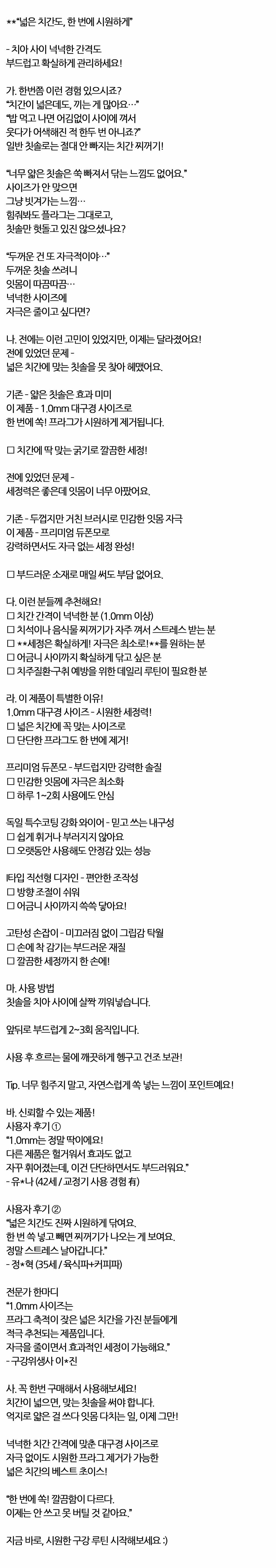 넓은치간 한번에 시원하게 치간칫솔 I타입 S 1.0mm 5P