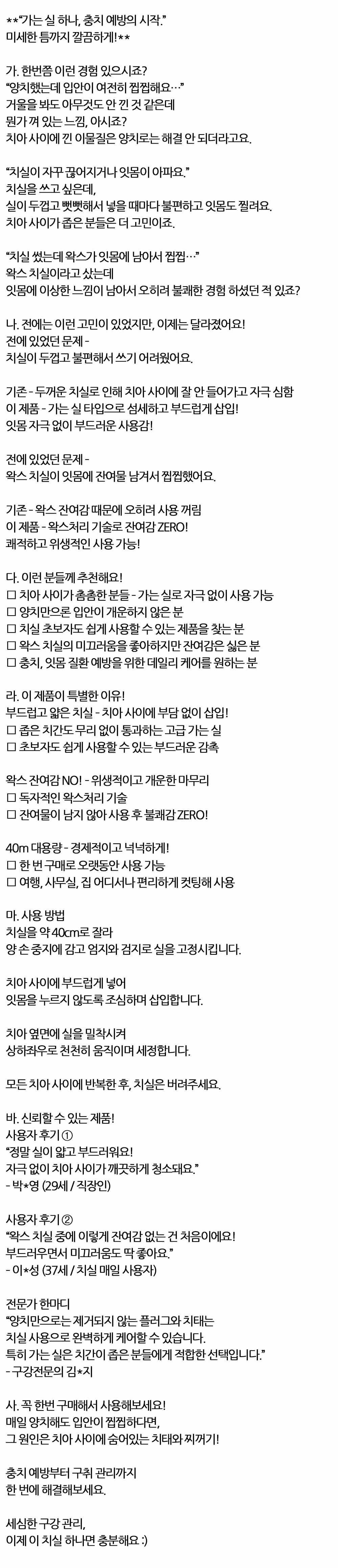 양치했는데 입안이 여전히 찝찝해요 치실 가는실 40m