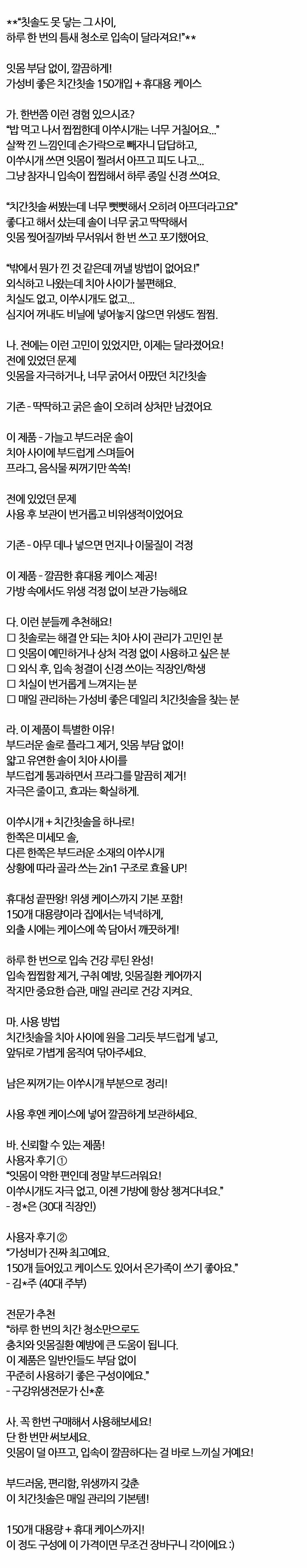 하루 한번 틈새청소로 달라져요 휴대용 치간칫솔 150P