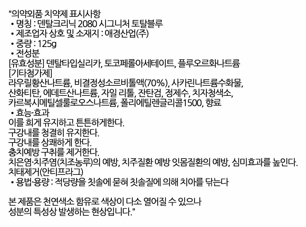 미루지 말고 오늘부터 시작하세요 민트 치약 125g 4입