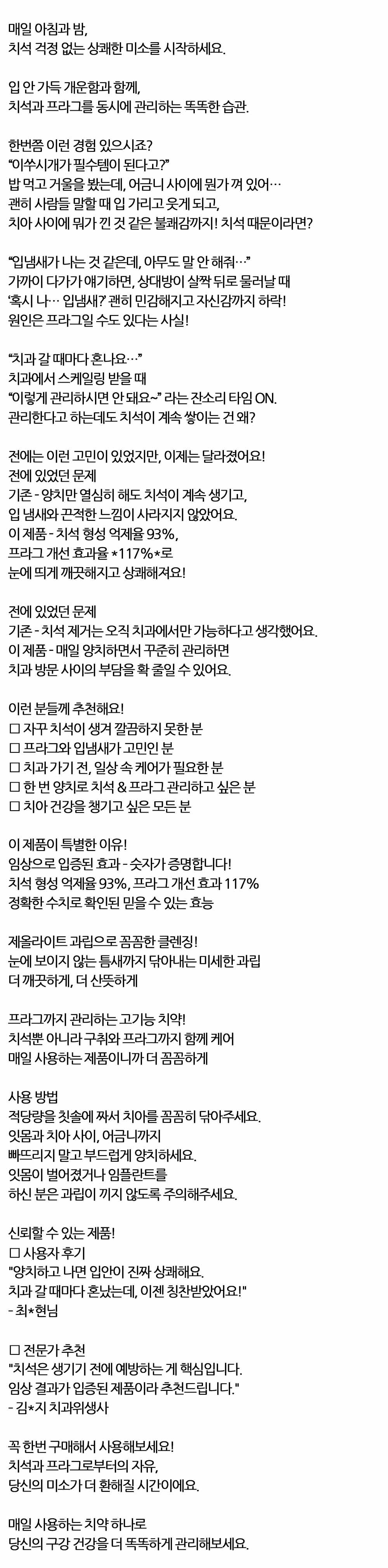 치석은 생기기 전에 예방하는 게 핵심 치약 120g 3입