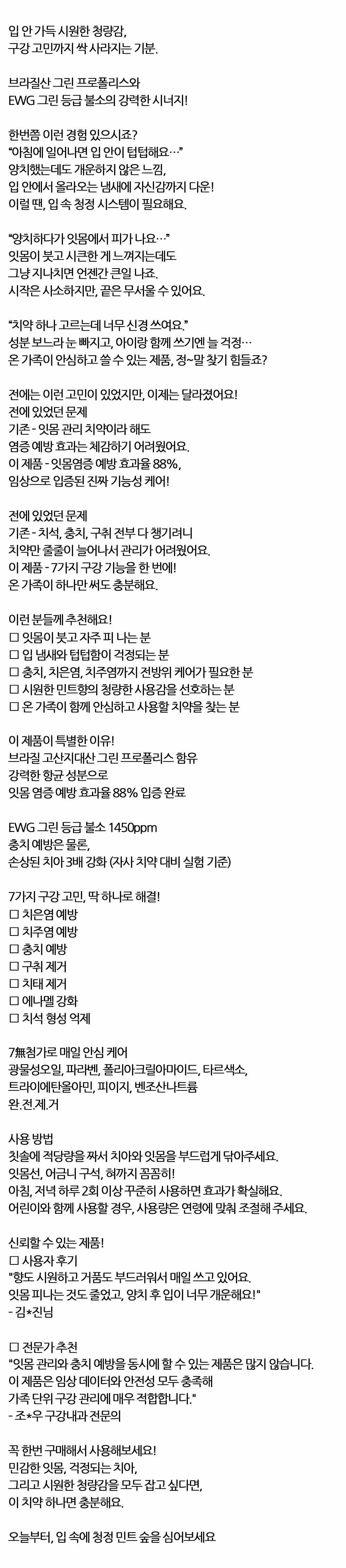 입 안 가득 시원한 민트향 청량감 구강 치약 100g 3입
