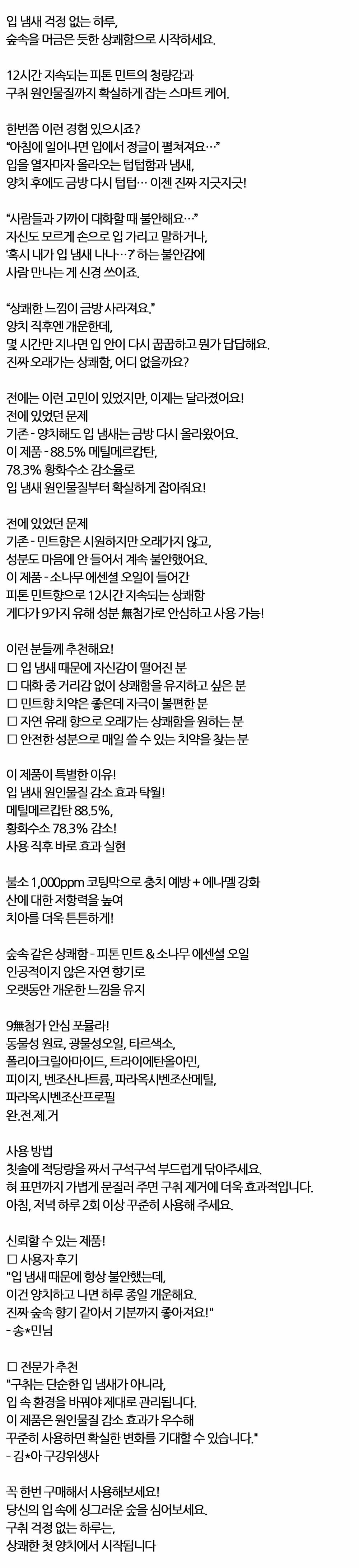 12시간 지속되는 피톤 민트의 청량감 치약 120g 3입