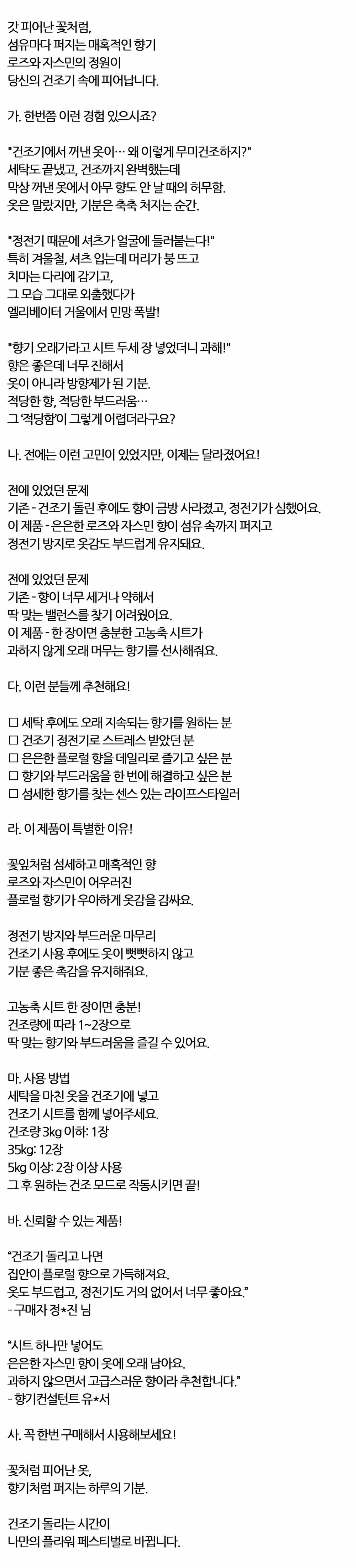 로즈와 자스민 매혹적인 향기 건조기 드라이시트 40매