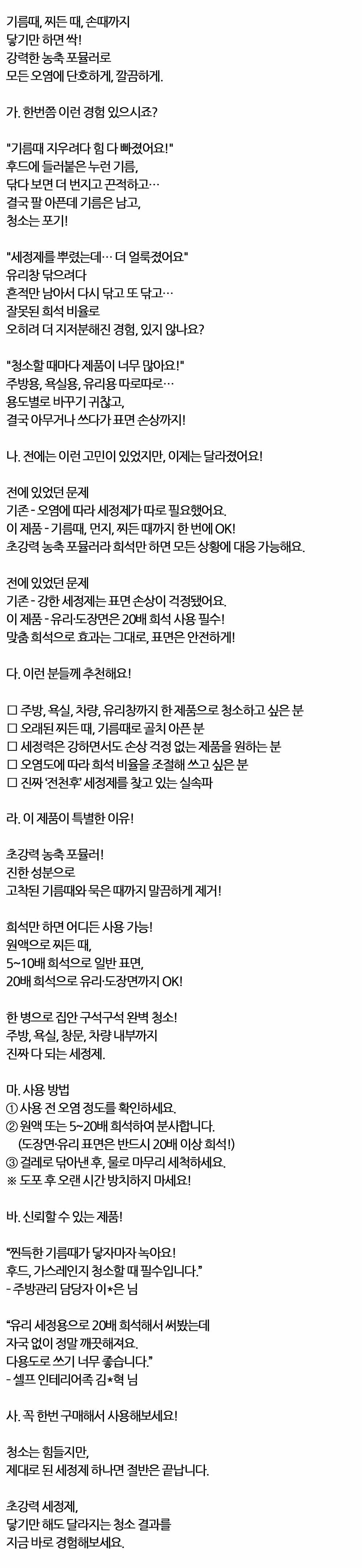 찌든때 손때까지 닿기만하면 싹 초강력 세정제 1000ml