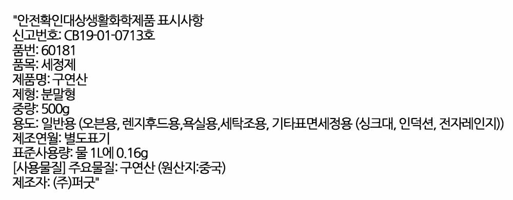 단단하게 붙은 물때까지 말끔하게 분해 구연산 500g