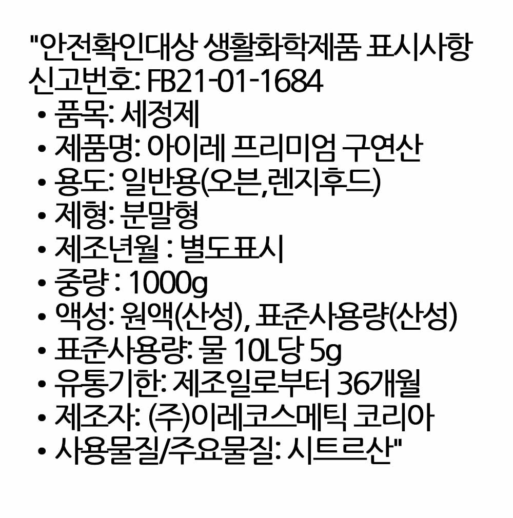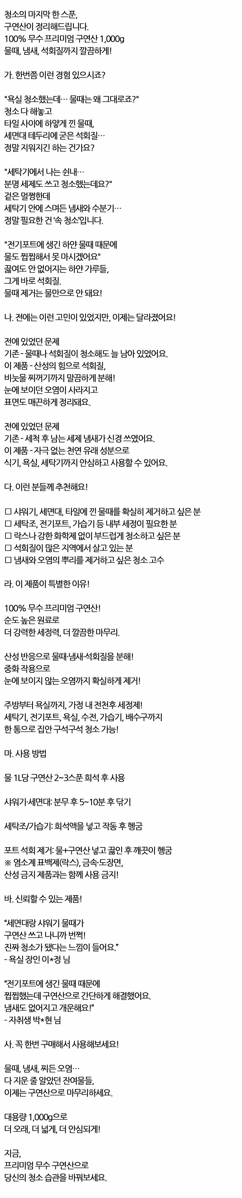 청소의 마지막 한스푼 구연산이 정리해드립니다 1000g