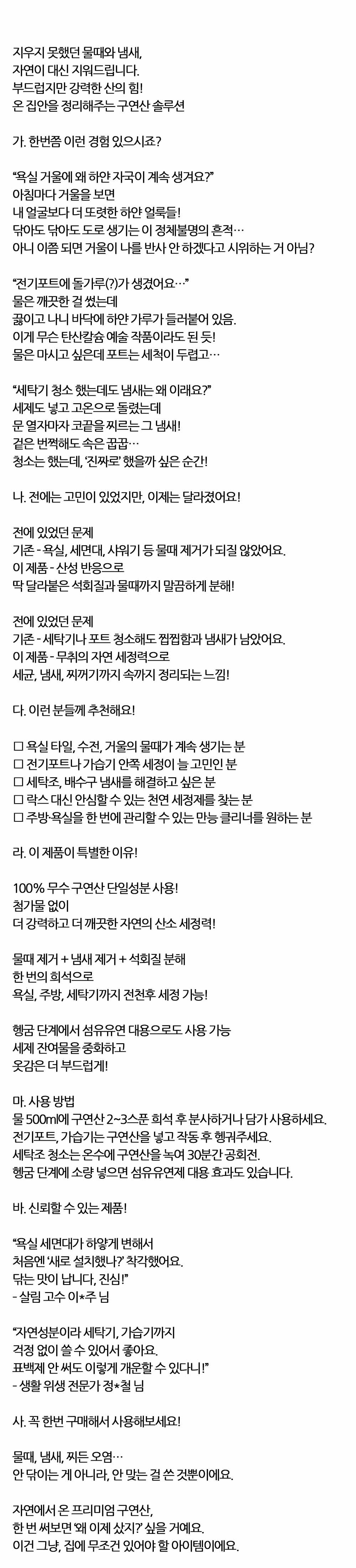 지우지 못했던 물때와 냄새 지워드립니다 구연산 1kg