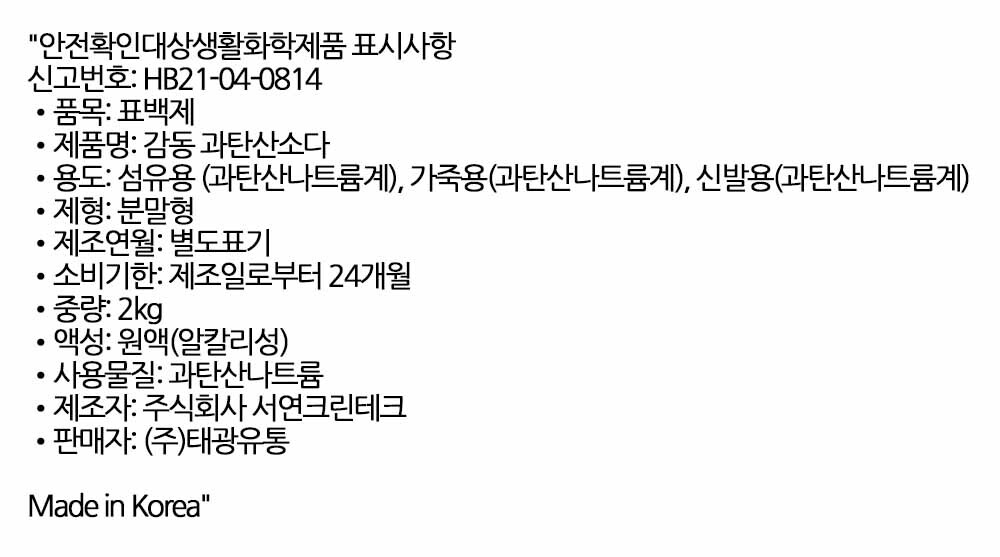 우리 가족의 옷을 깨끗하고 안전하게 과탄산소다 2kg