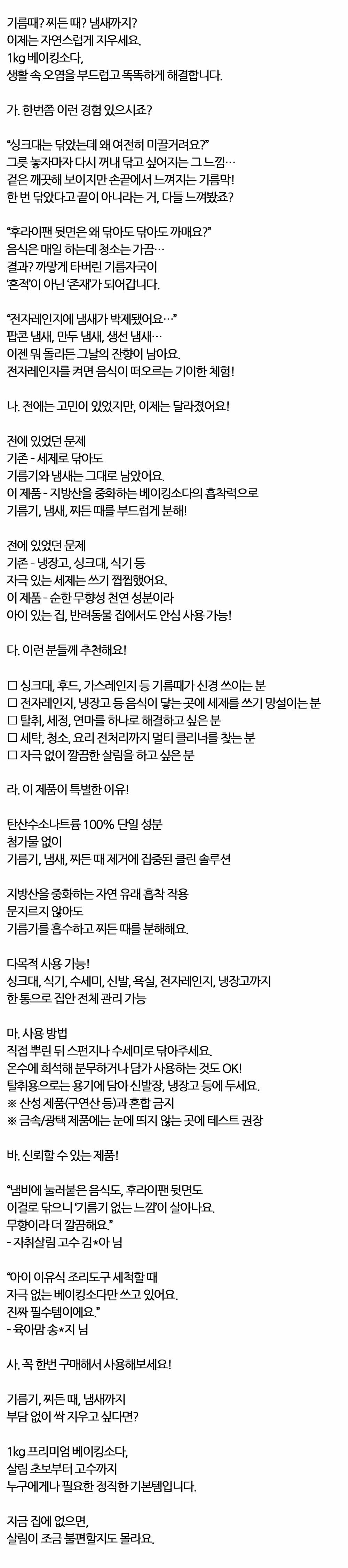 생활 속 오염 부드럽고 똑똑하게 해결 베이킹소다 1kg