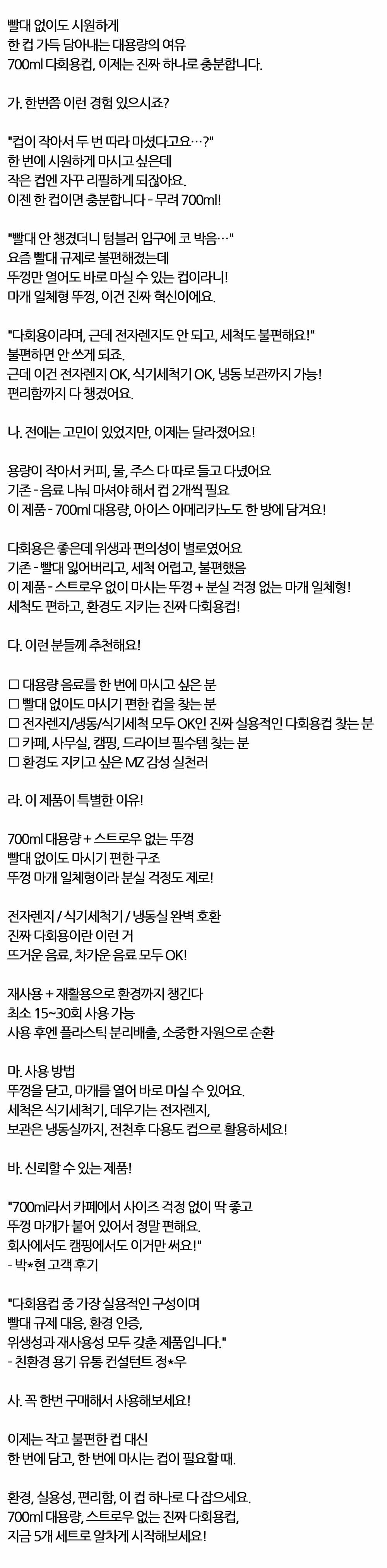 아이스 아메리카노 한방에 담겨요 다회용컵 700ml 5개