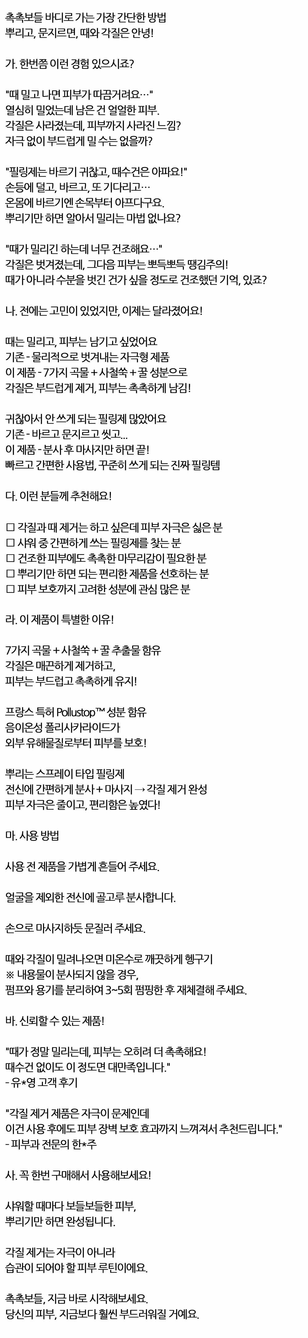 뿌리고 문지르면 때와 각질은 이제안녕 때필링 300ml