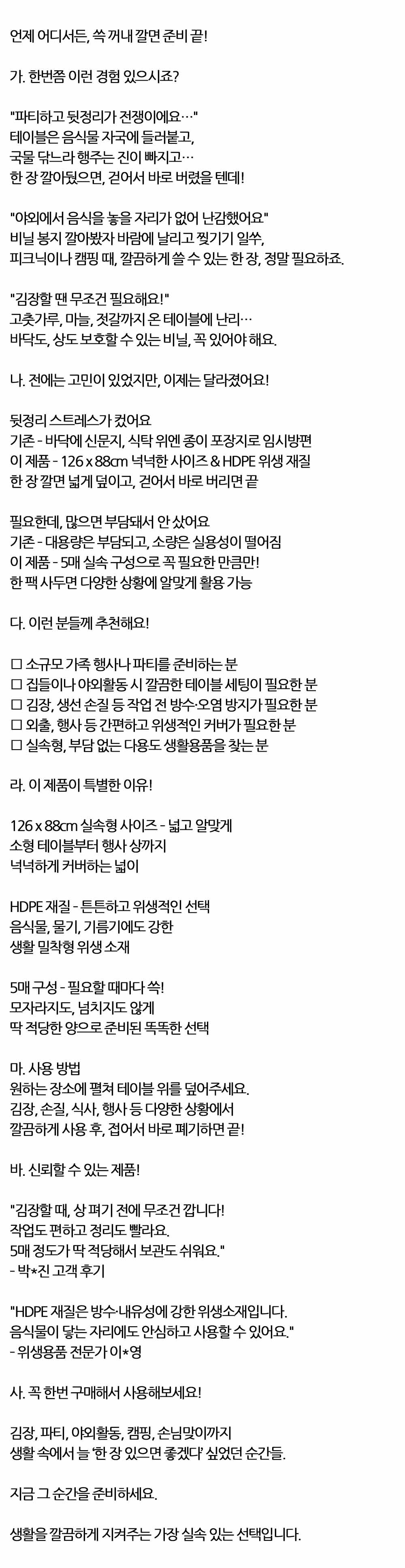 언제 어디서든 쓱 꺼내 깔면 준비 끝 행사 식탁보 5매