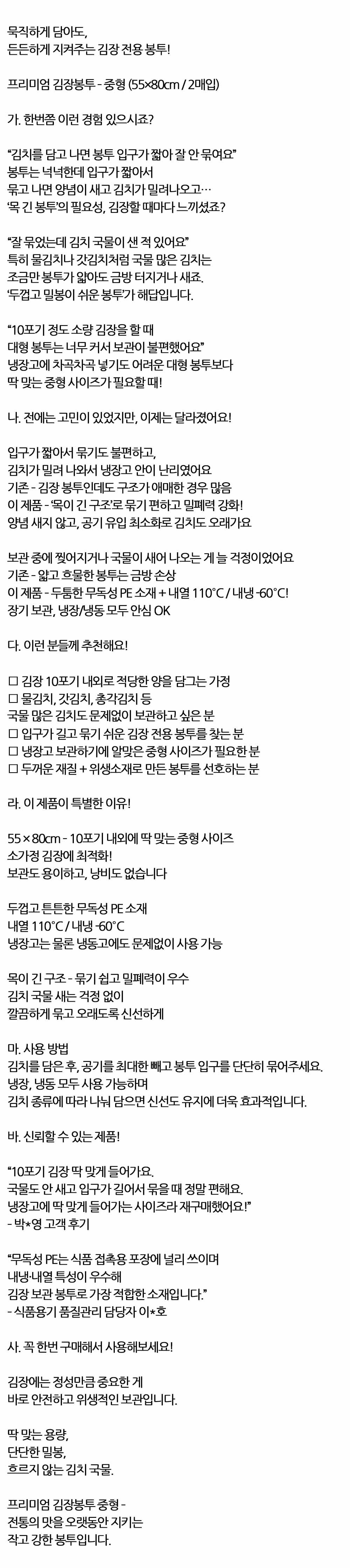 전통의 맛을 오랫동안 지키는 프리미엄 김장봉투 2매