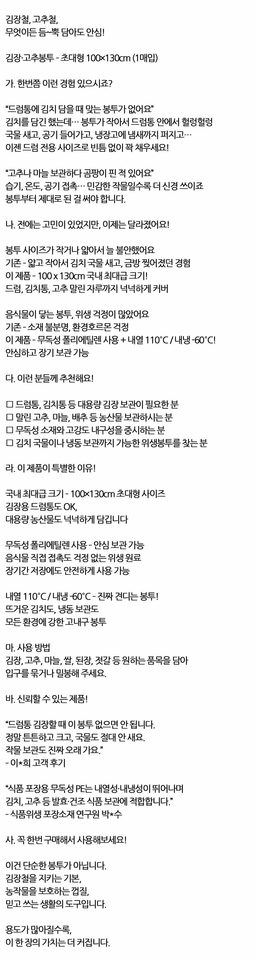 봉투가 작아 여러번 나눠 담아요 고추 김장봉투 1매