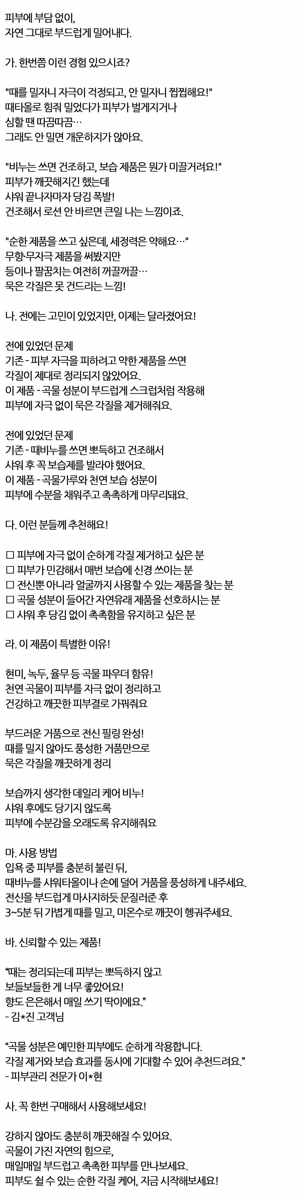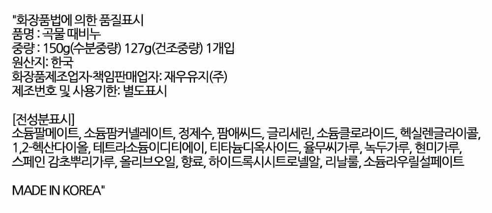 자연 그대로 부드럽게 밀어내다 곡물 때비누 150g