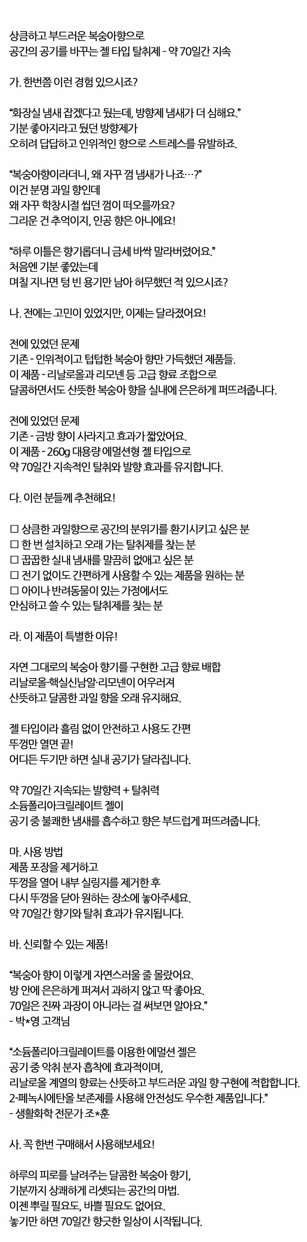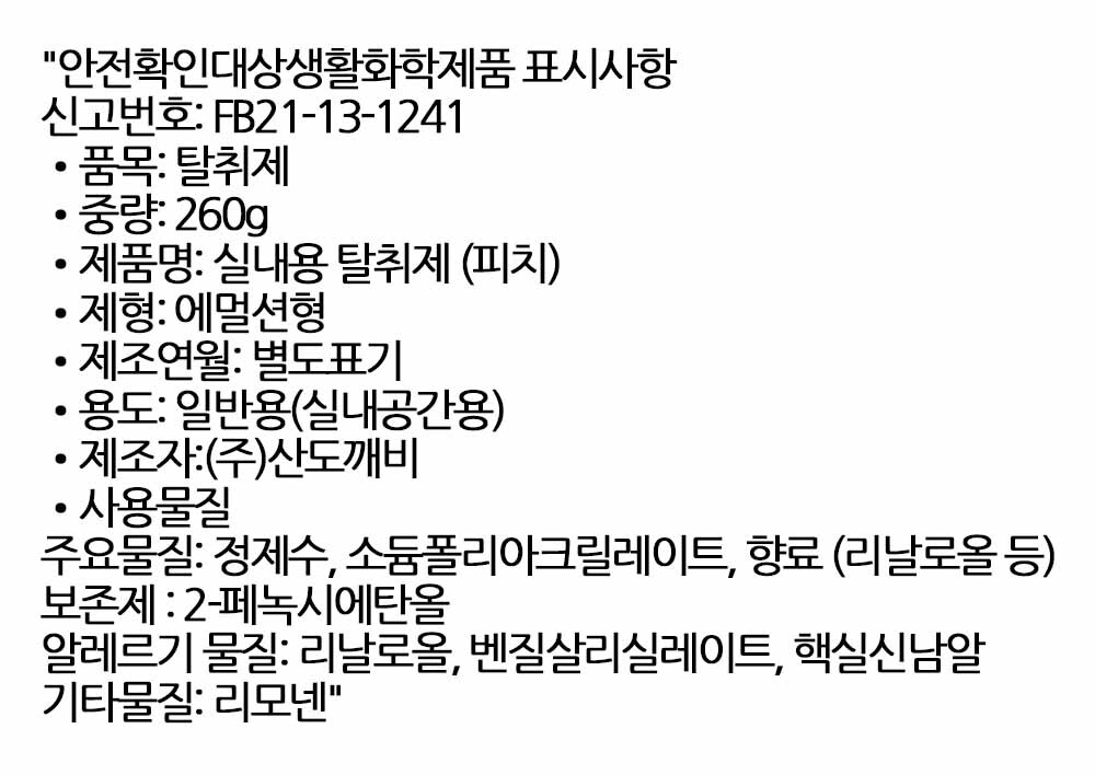상큼하고 부드러운 복숭아향 70일 실내 탈취제 260g