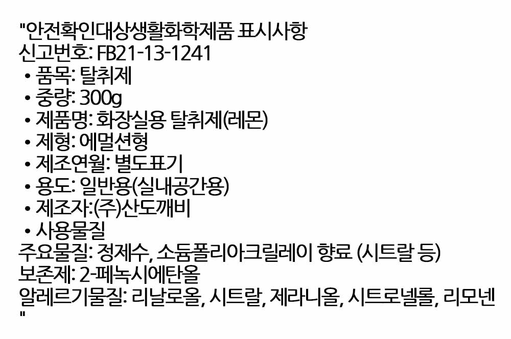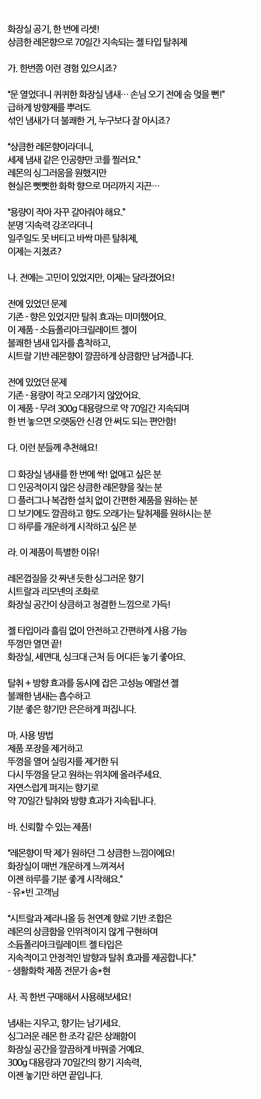 상큼한 레몬향 70일간 지속되는 화장실 탈취제 300g