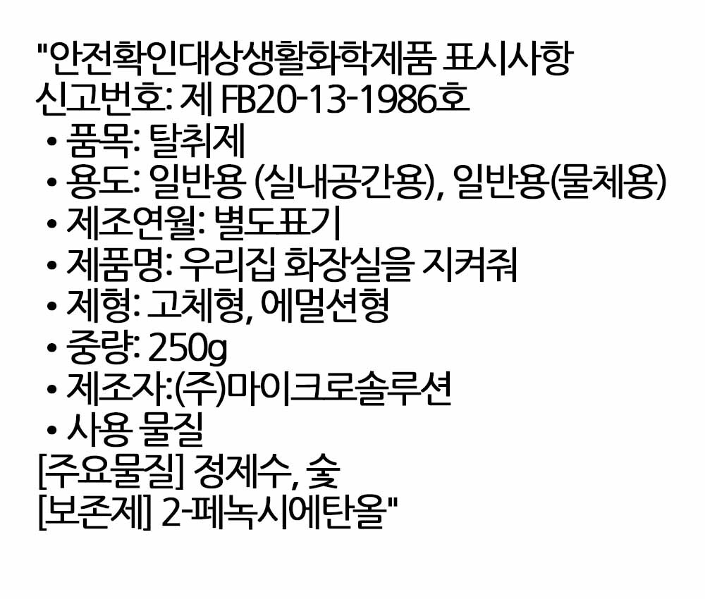 습기와 배관에서 올라오는 냄새 화장실 탈취제 250g