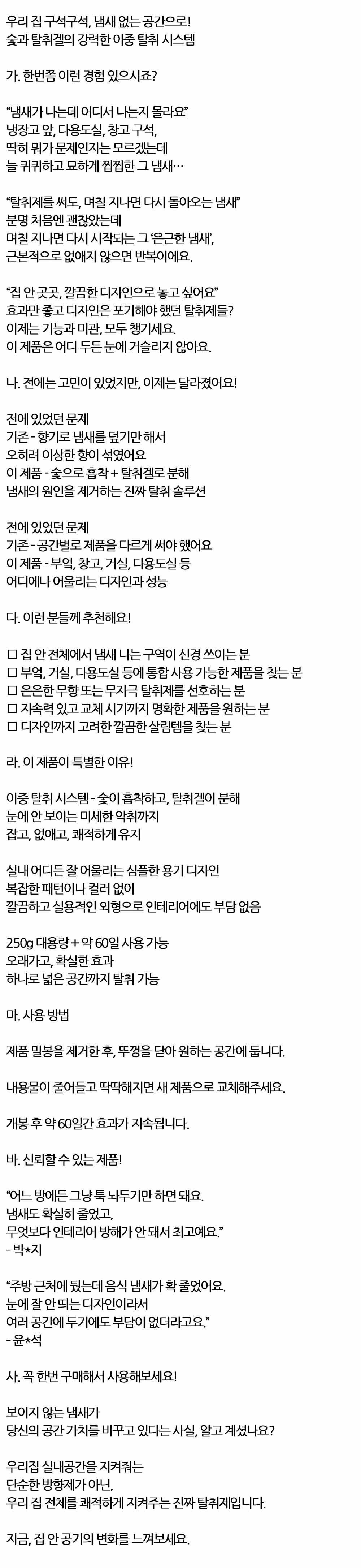 냄새가 나는데 어디서 나는지 몰라요 실내탈취제 250g