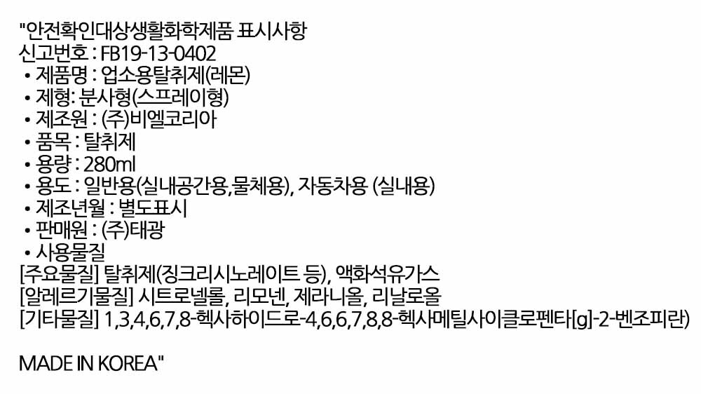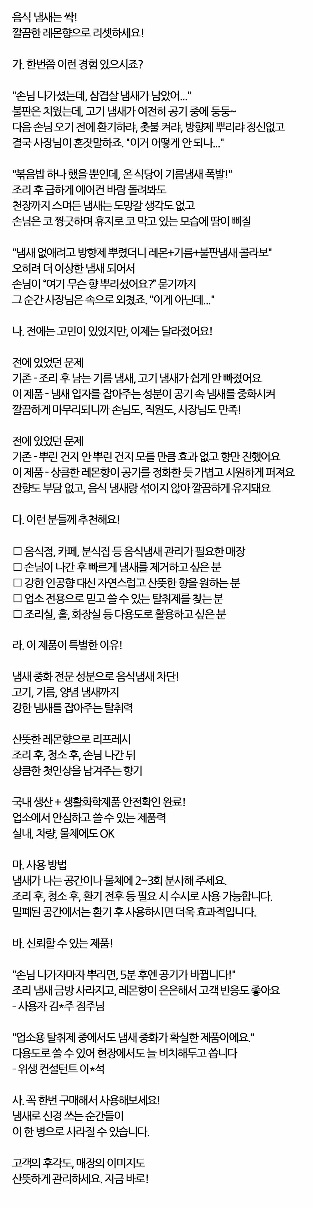기름냄새 음식냄새가 쉽게 안 빠져요 탈취제 280ml