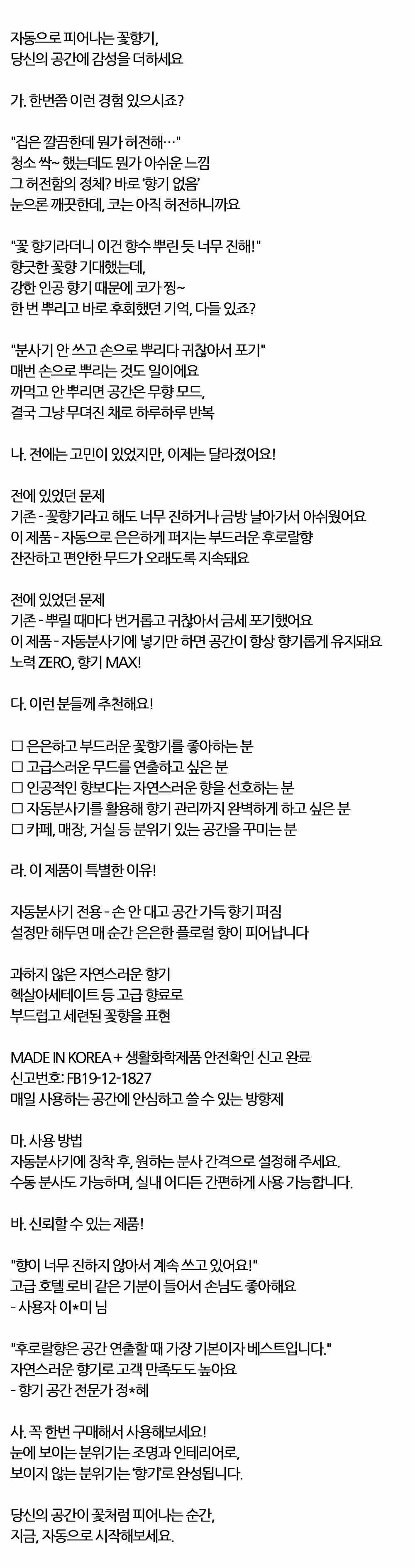 부드럽고 은은한 꽃향기 자동분사기 방향제 280ml