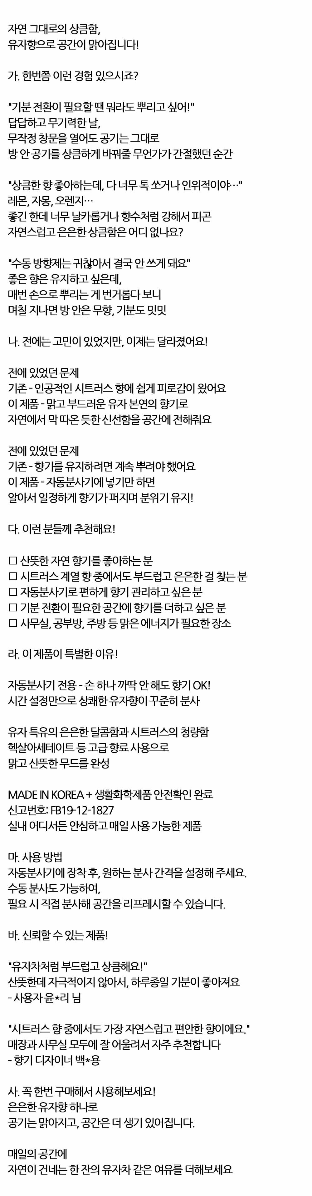 자연 그대로의 상큼함 유자 자동분사기 방향제 280ml