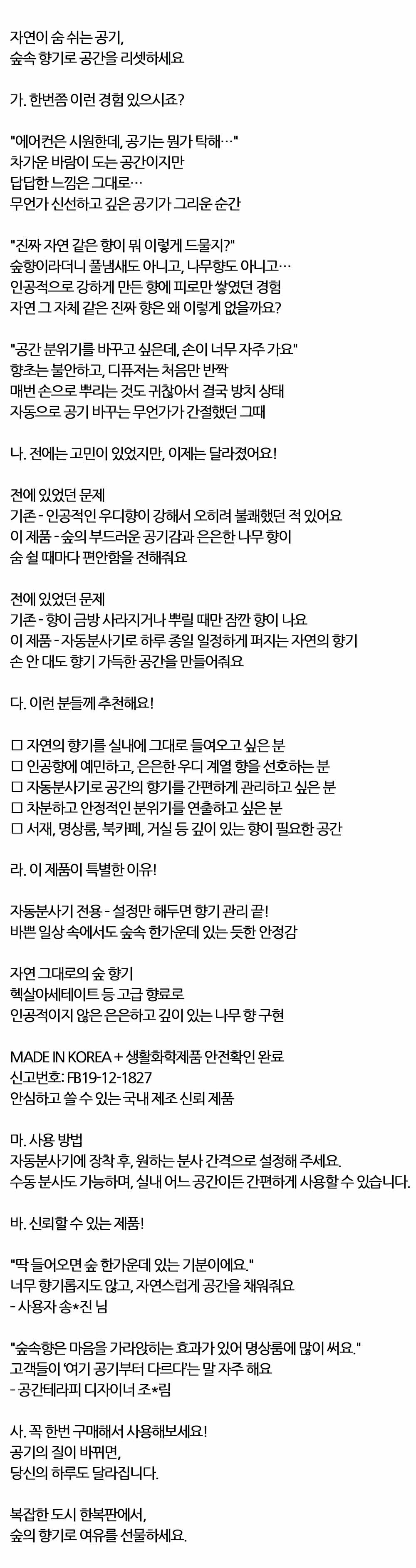 자연이 숨 쉬는 공기 숲속향 자동분사기 방향제 280ml