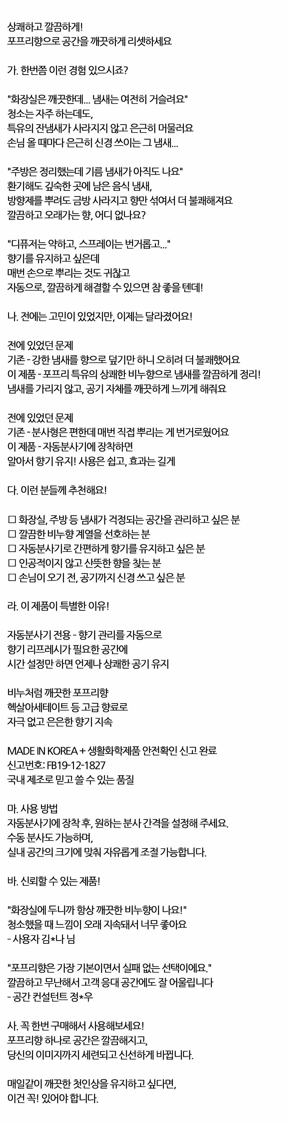 상쾌하고 깔끔한 포프리향 자동분사기 방향제 280ml