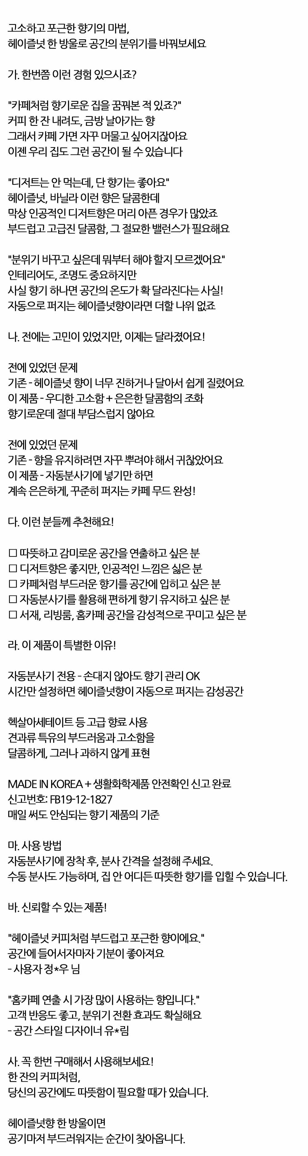 카페처럼 부드러운 헤이즐넛 자동분사기 방향제 280ml
