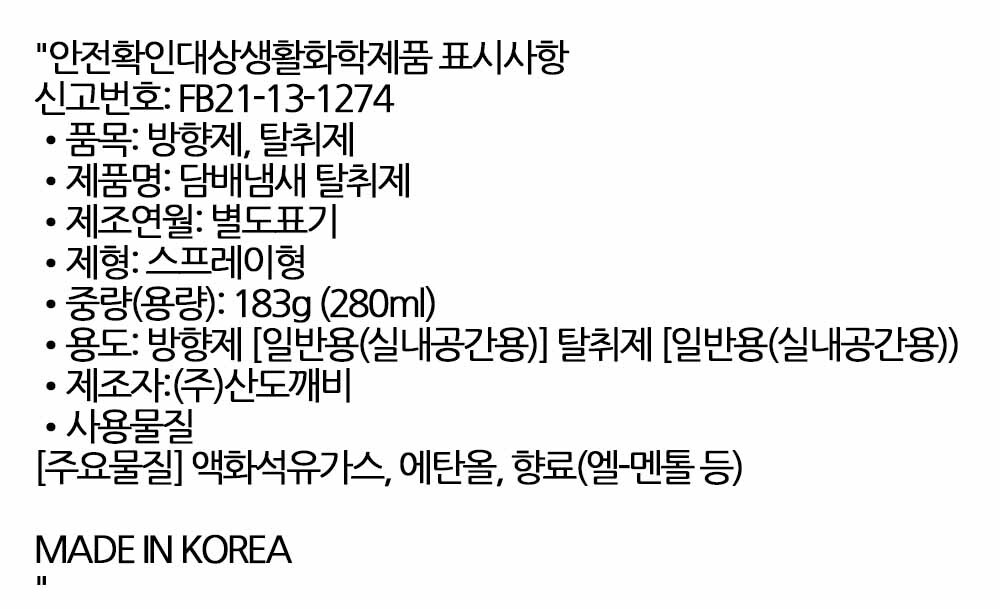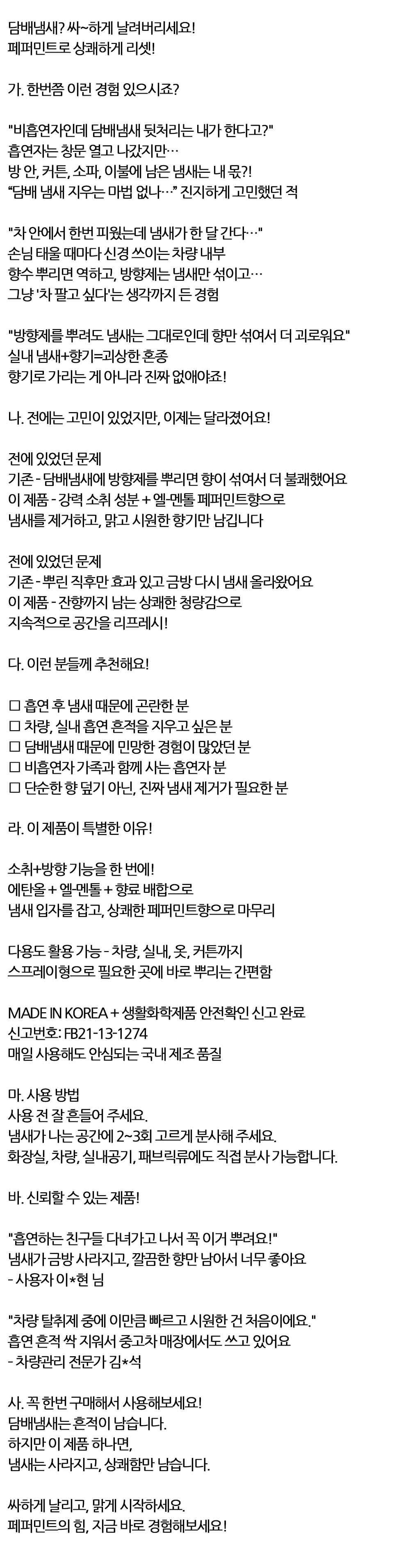 담배 냄새 지우는 마법 없나 페퍼민트향 탈취제 280ml