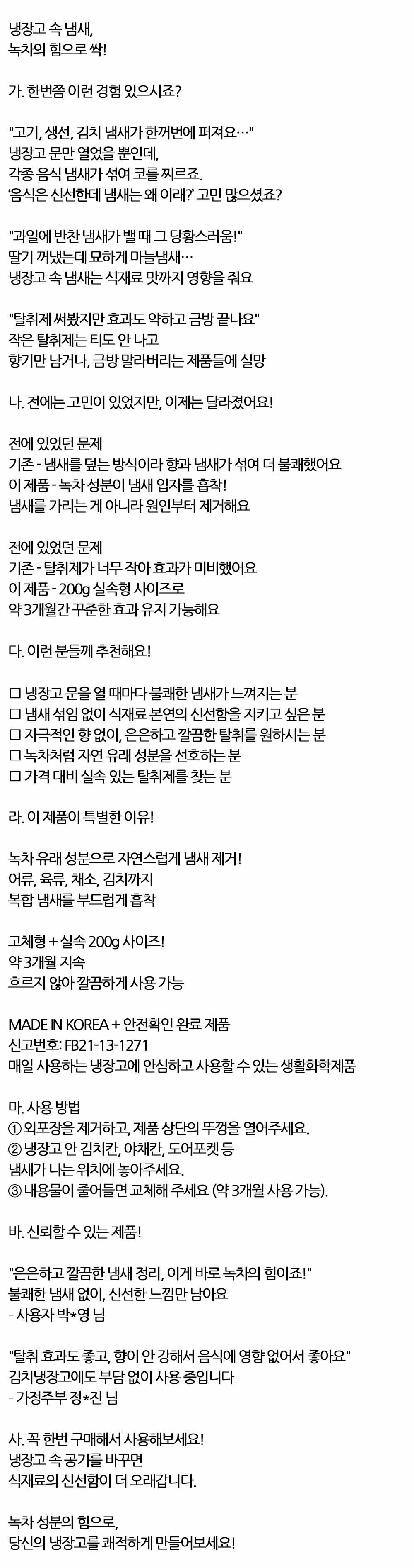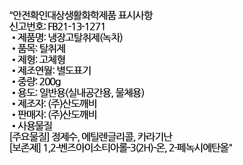 녹차 성분이 냄새 입자를 흡착 냉장고 탈취제 200g