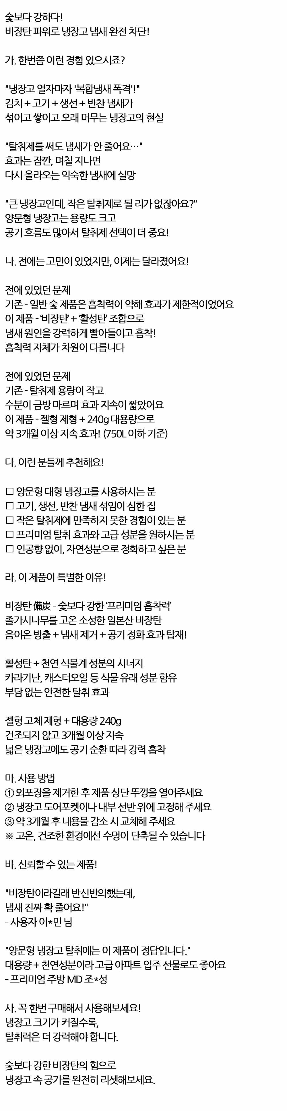 비장탄 활성탄 파워 양문형 대형 냉장고 탈취제 240g