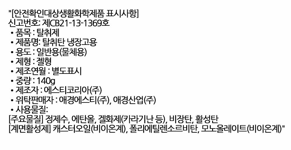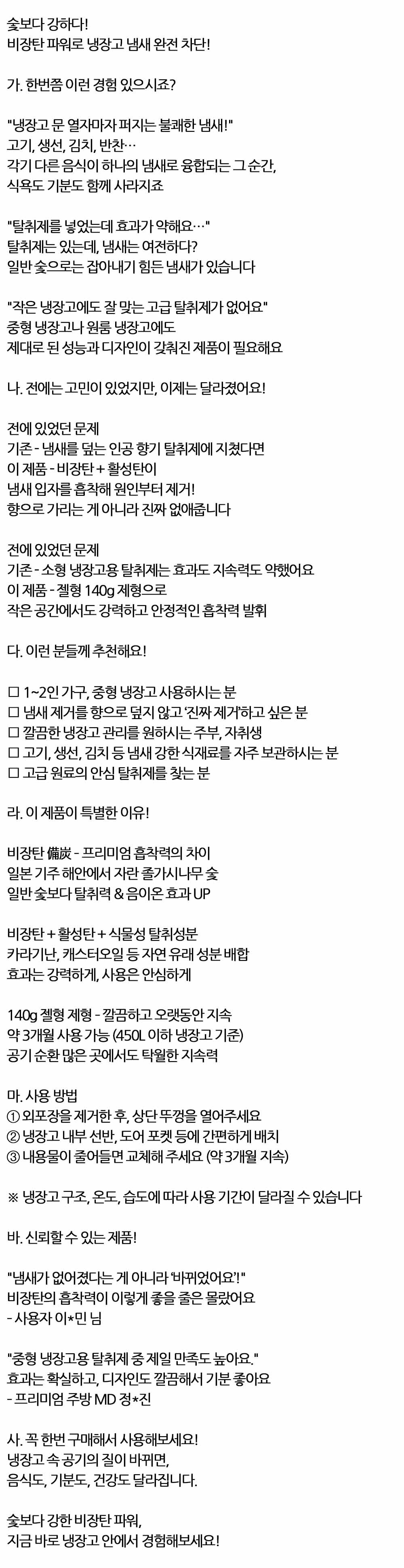 프리미엄 비장탄 흡착력의 차이 냉장고용 탈취제 140g